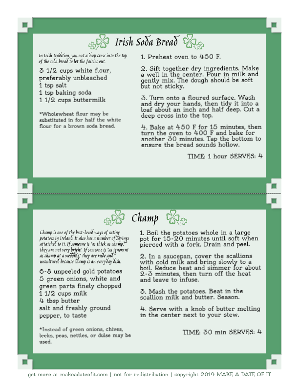 Lastly, since this is a date after all, we’ve included a fun game inspired by the Blarney Stone called The Gift of Gab: A Game for Lovers. In it, you try to deceive your partner using your gift of eloquence—or lack there of. All the while you get to learn a little about Irish legend and myth. It’s easy to learn and easy to download in the date night kit below.